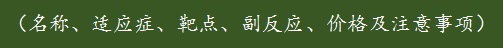 - 严重的副反应:血小板细胞减少,肿瘤出血,QT间期延长,左心室功能下降,组织坏死,下颌骨无菌性坏死,溶血,肝毒性