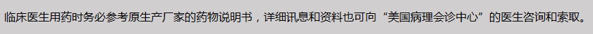 如果患者需要及时了解最新上市的抗癌药物的情况和资料(国内一般滞后 2-5 年,港澳及日本,新加坡等地区一般比美国滞后至少6-12月),请与美国病理会诊中心直接联系: